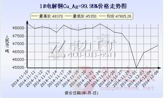 上,F(xiàn)貨銅價走勢圖12月8日