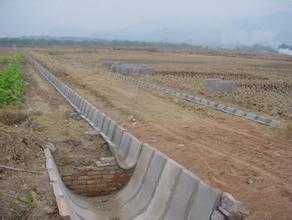 4、渠邊護(hù)土,要求顆粒不大于20cm,密度均勻平整.