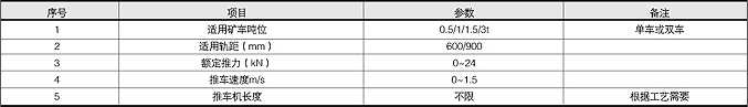 銷齒式推車機(jī)技術(shù)參數(shù)表