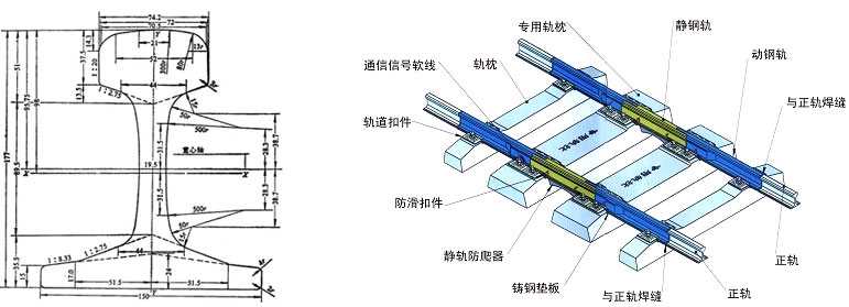 為了適應(yīng)道岔、特大橋和無縫線路等結(jié)構(gòu)的需要,我國鐵路還采用了特種斷面(與中軸線不對稱工字型)鋼軌。