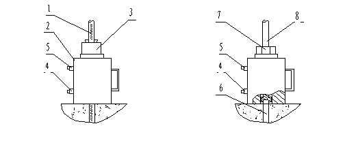 1 被測(cè)錨桿(螺紋鋼) 2液壓缸  3 錨具  4 進(jìn)油口 (加載時(shí)) 5出油口(加載時(shí))